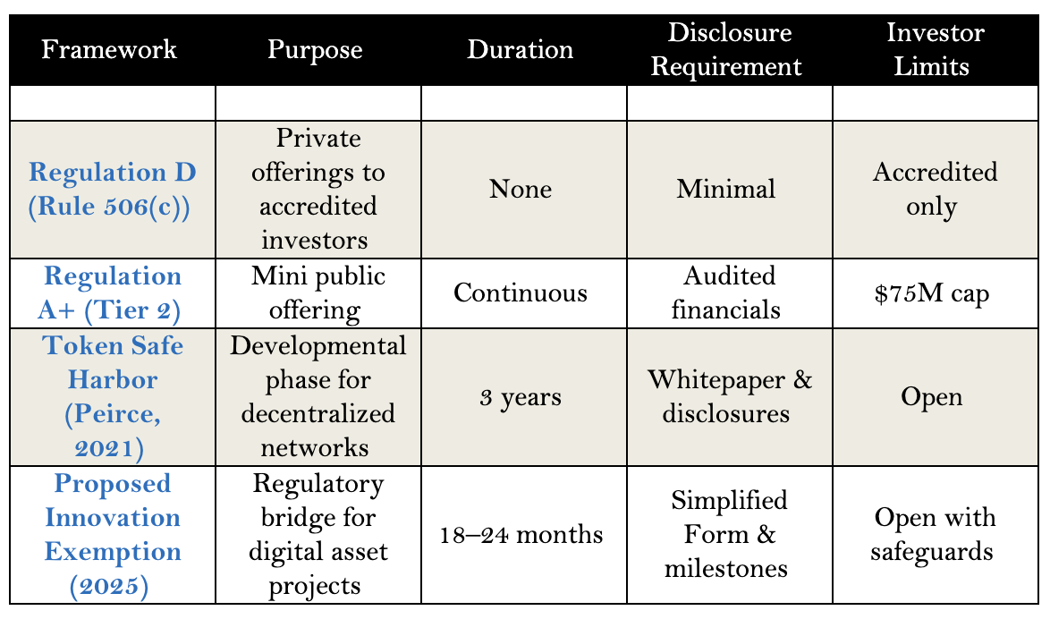 2. Disclosure Obligations: Issuers would need to publish key information about their teams, tokenomics, and network development milestones — similar to scaled Regulation A disclosure.