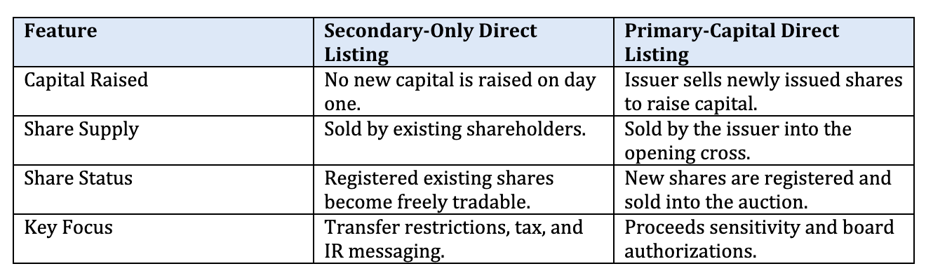 Comparison: Secondary-Only vs. Primary-Capital Listings